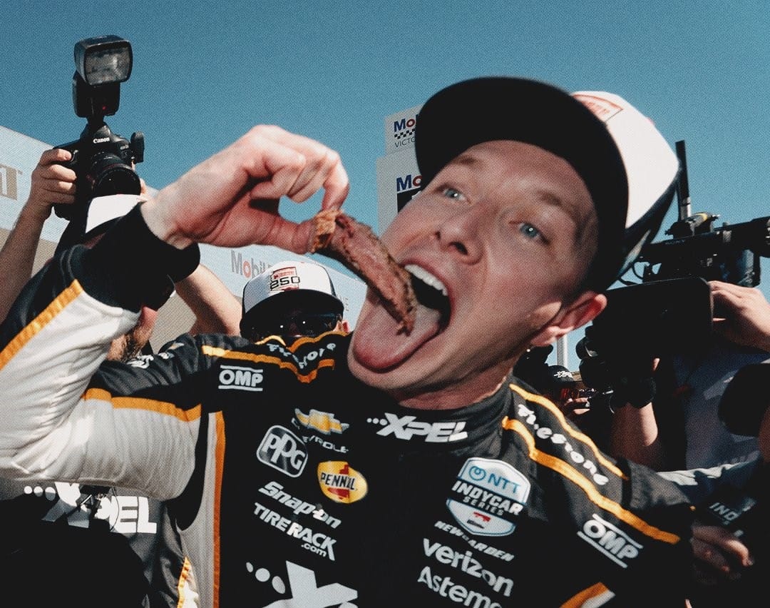 It’s fast becoming tradition that, at the second race of the season, a talented driver getting his big shot with a top team takes his first trophy in new colors. Last year, it was Christian Lundgaard for McLaren, and this time, it was David Malukas’s turn. Friday’s qualifying was a huge breakthrough for Lil Dave, as after several near-misses in oval qualifying last year, he finally made a time stick at the top to earn his first career pole position. Malukas then proceeded to lead the opening 73 laps, a long enough distance that he came away with maximum bonus points, then overcome a stumble out of his pit box in the midgame to hold off Pato O’Ward and Marcus Armstrong and ultimately finish 3rd. That meant a lunch of traditional podium champagne and non-traditional steak, the latter of which the trophy presenters fed Malukas a strip of before handing him his actual prize.